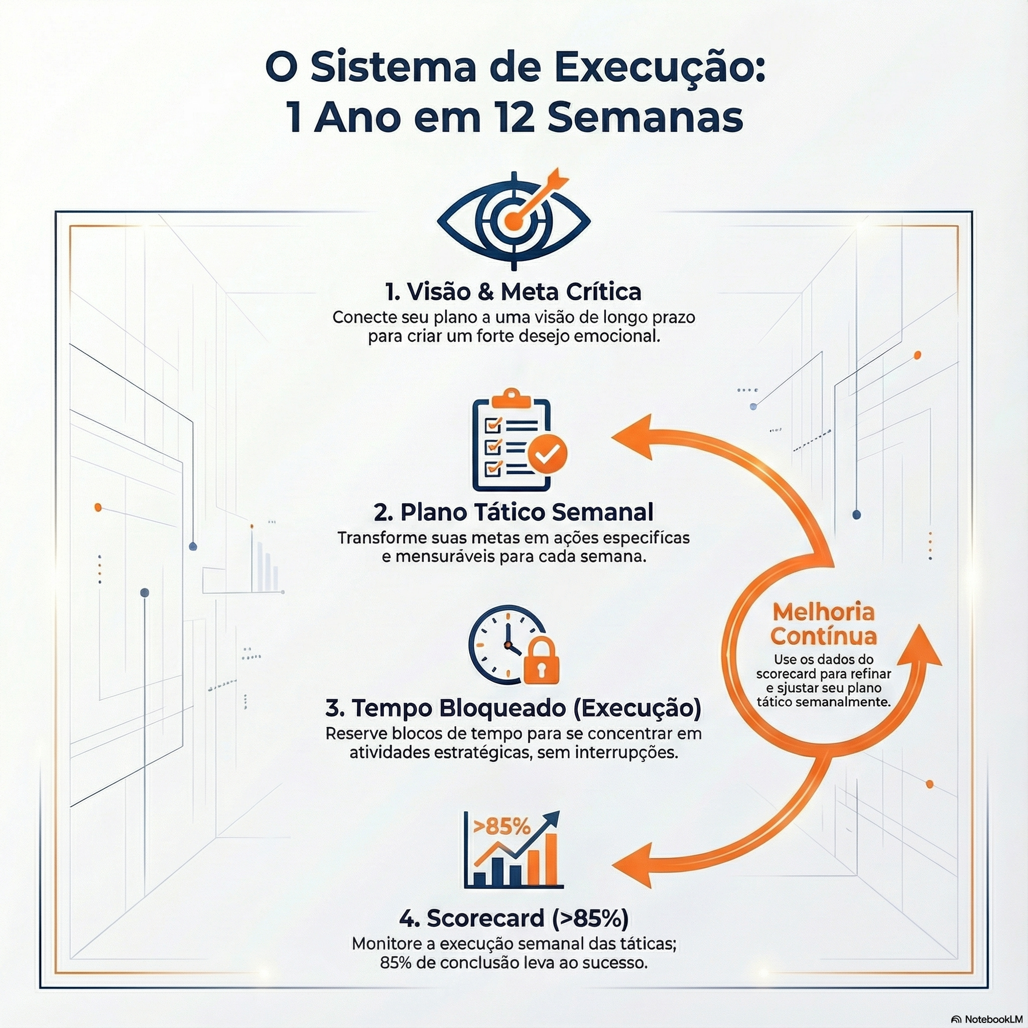 Cansado de planejar e não cumprir? Descubra como montar um sistema de execução à prova de falhas baseado no método "1 Ano em 12 Semanas". Menos ruído, mais resultados.